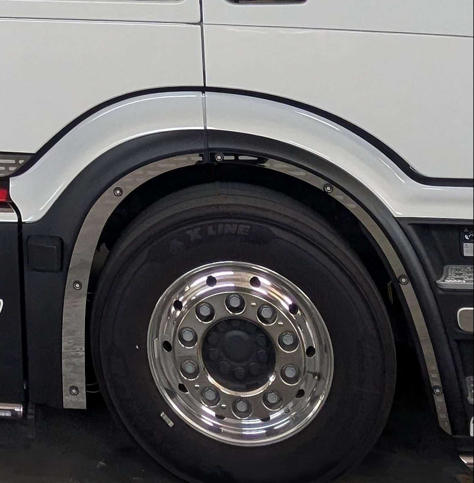 Il Passaruota Anteriore in Acciaio Inox per Mercedes Pro Cabin è progettato per offrire protezione e stile al tuo camion.