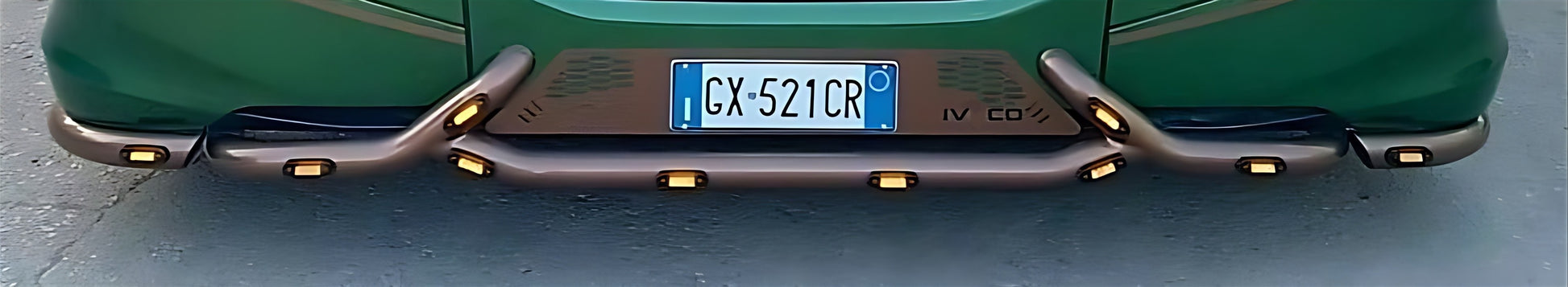 Dai al frontale del tuo Iveco S-Way un aspetto robusto e distintivo con questo bullbar portatarga inox, modello lungo, rialzato e aperto anteriormente, progettato per protezione e stile.