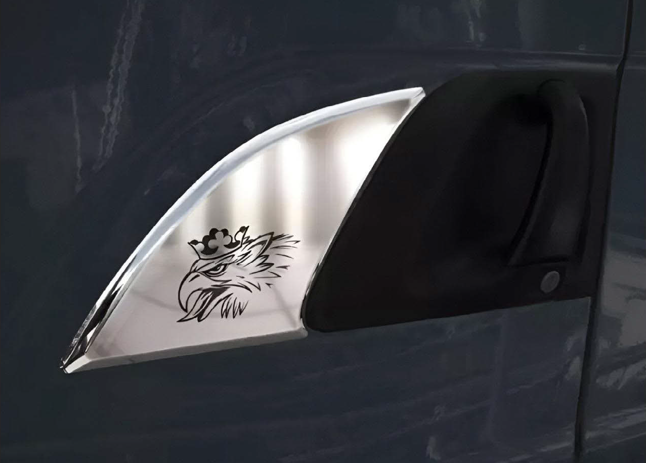 Personalizza il tuo Scania con la coppia di applichi laterali maniglia in acciaio inox, disponibili nelle versioni V8 e Griffin. Un dettaglio raffinato che unisce eleganza e carattere, donando un tocco brillante e distintivo alle maniglie del tuo veicolo.