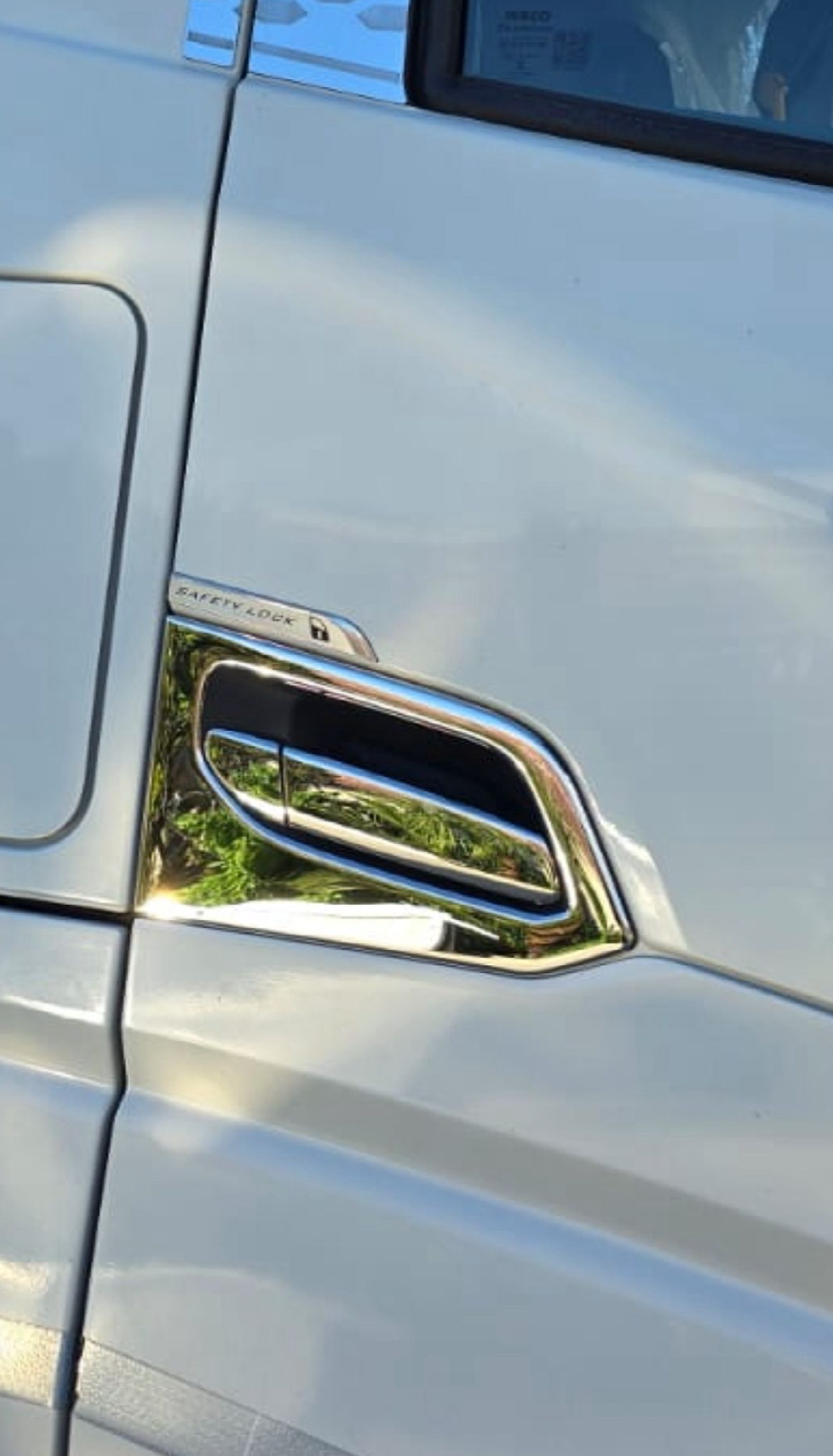 La Coppia Applicco Maniglia Iveco S-Way Pz.6 è l’accessorio ideale per valorizzare le maniglie esterne del tuo camion, unendo stile e protezione.