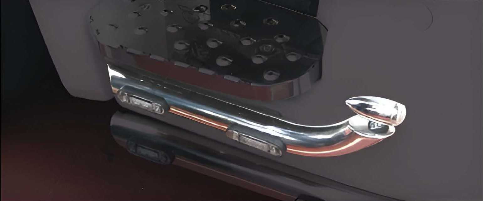 Progettata per la Scania Serie S, la coppia di tubi si installa facilmente senza modifiche, assicurando una perfetta integrazione con il gradino e il design della cabina.