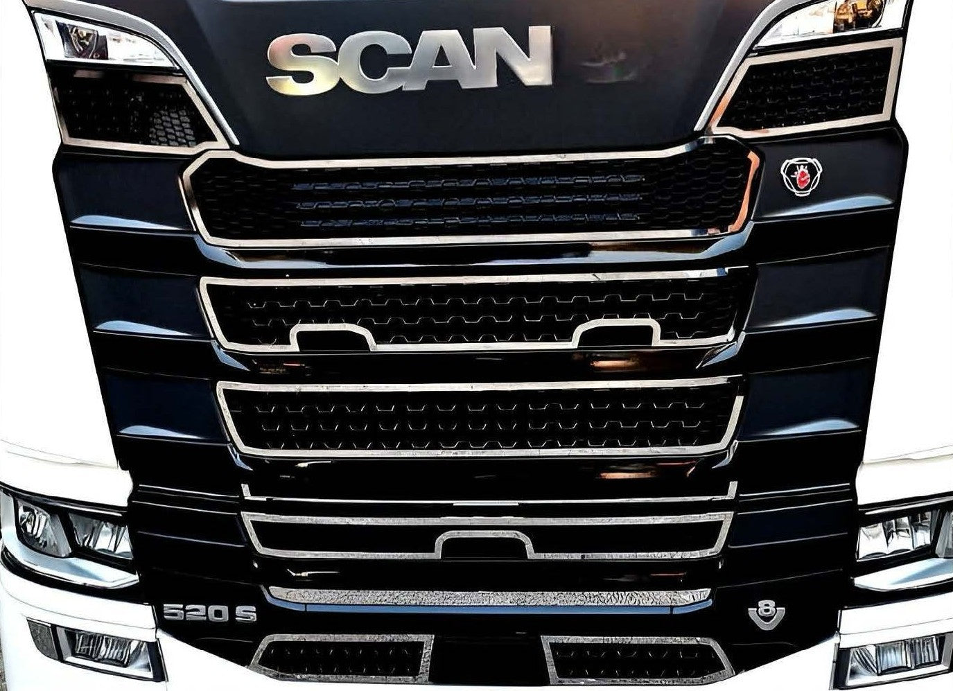 Il Kit Frontale Scania S Bordino Slim è l’accessorio ideale per chi desidera un look raffinato e moderno, con linee sottili che esaltano l’eleganza del frontale.