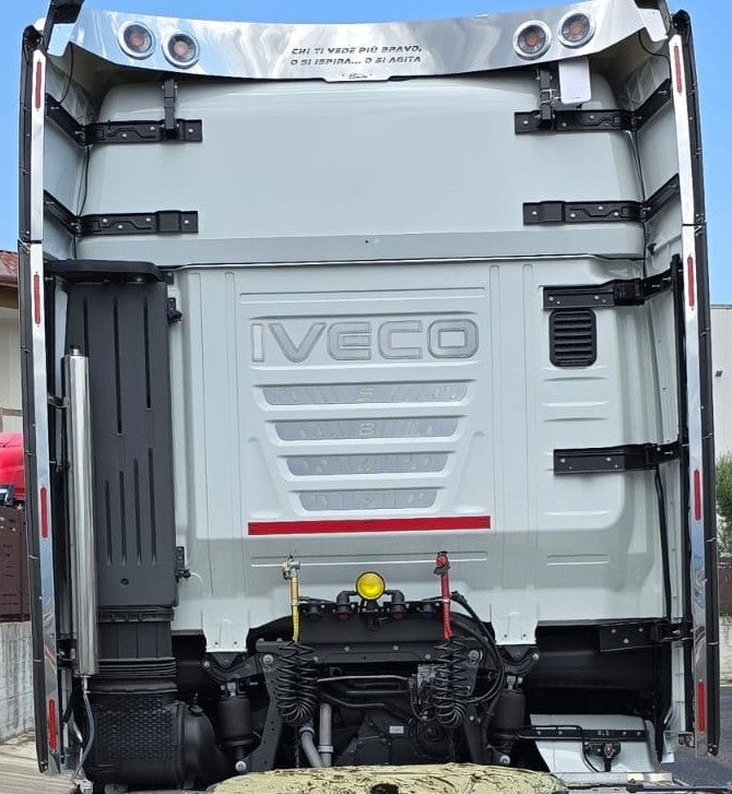Personalizza il tuo Iveco S-Way con questo kit inox di alta qualità, pensato per valorizzare la parte posteriore delle ali spoiler. La doppia piega offre un design moderno e aggressivo, mentre i LED lunghi tipo neon garantiscono un effetto luminoso uniforme e d’impatto.