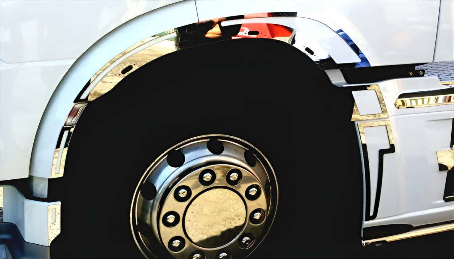 Rinnova il look del tuo camion con questo kit in acciaio inox per giro parafango anteriore, dotato di fori per luci LED.