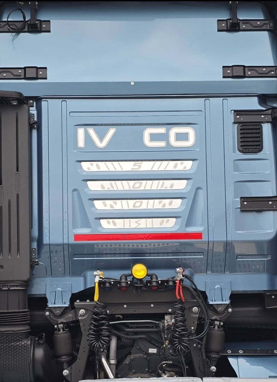 Completa gli interni del tuo Iveco S-Way con questo kit di inserti in acciaio inox per calotta posteriore, progettato per unire eleganza, resistenza e dettaglio estetico raffinato.