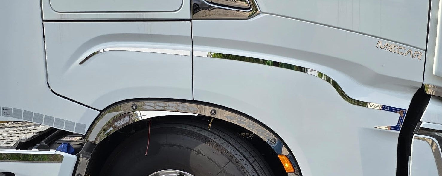 Valorizza il tuo Iveco S-Way con il kit inox per profilo sportello e fiancata, progettato per proteggere e rifinire i lati del veicolo con stile elegante e resistente.