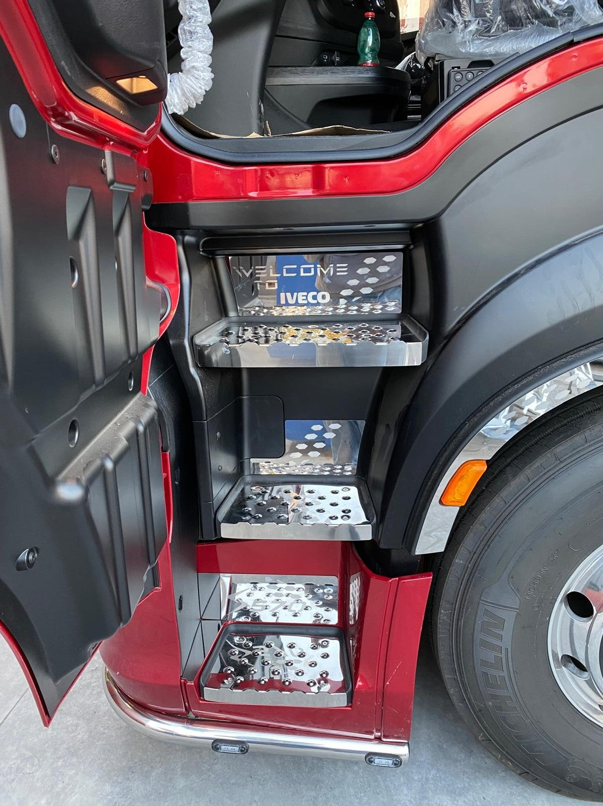 Rinnova e valorizza l’interno della cabina del tuo Iveco S-Way con il kit interno gradini salita, progettato per unire praticità, sicurezza ed eleganza.