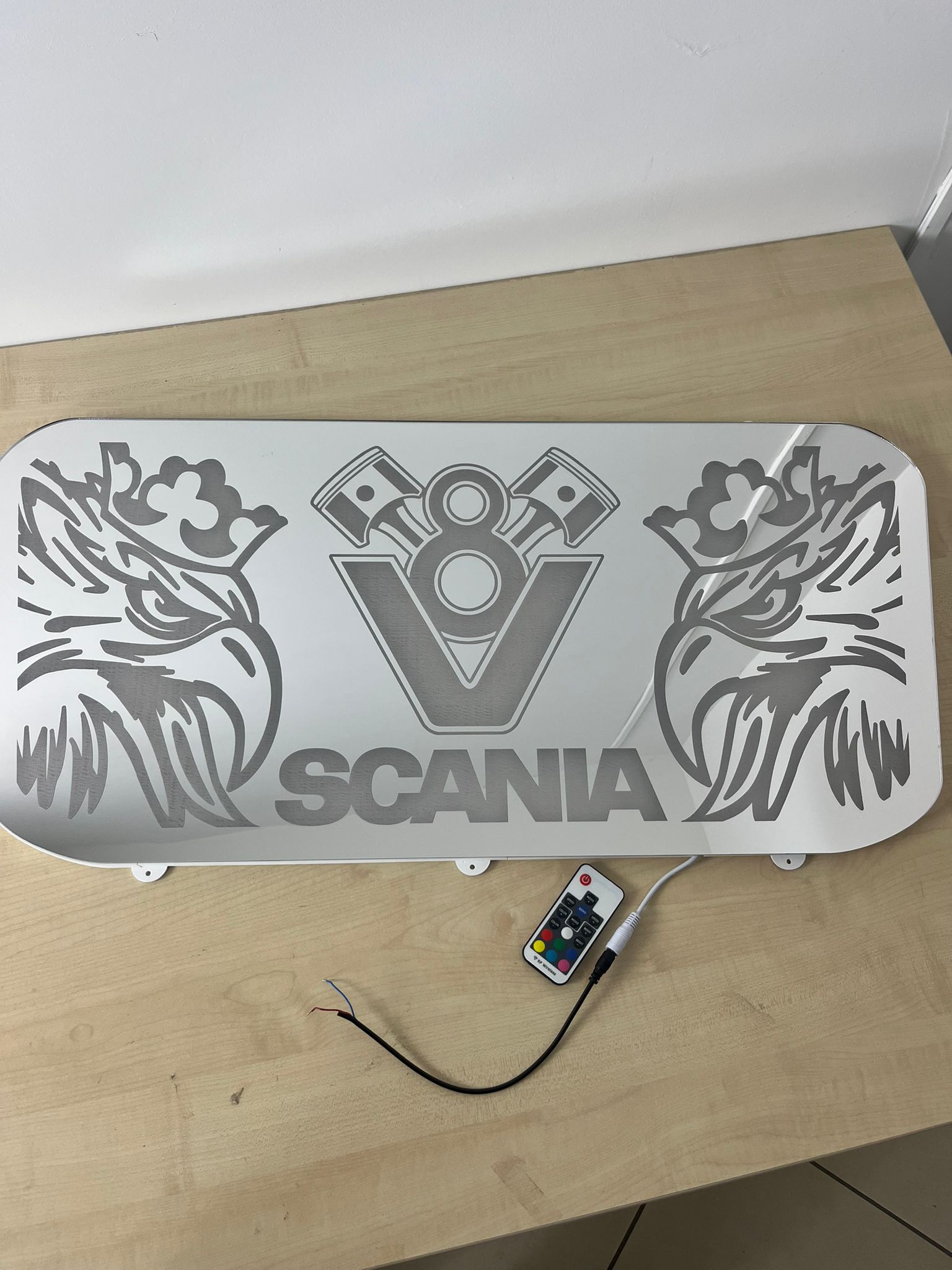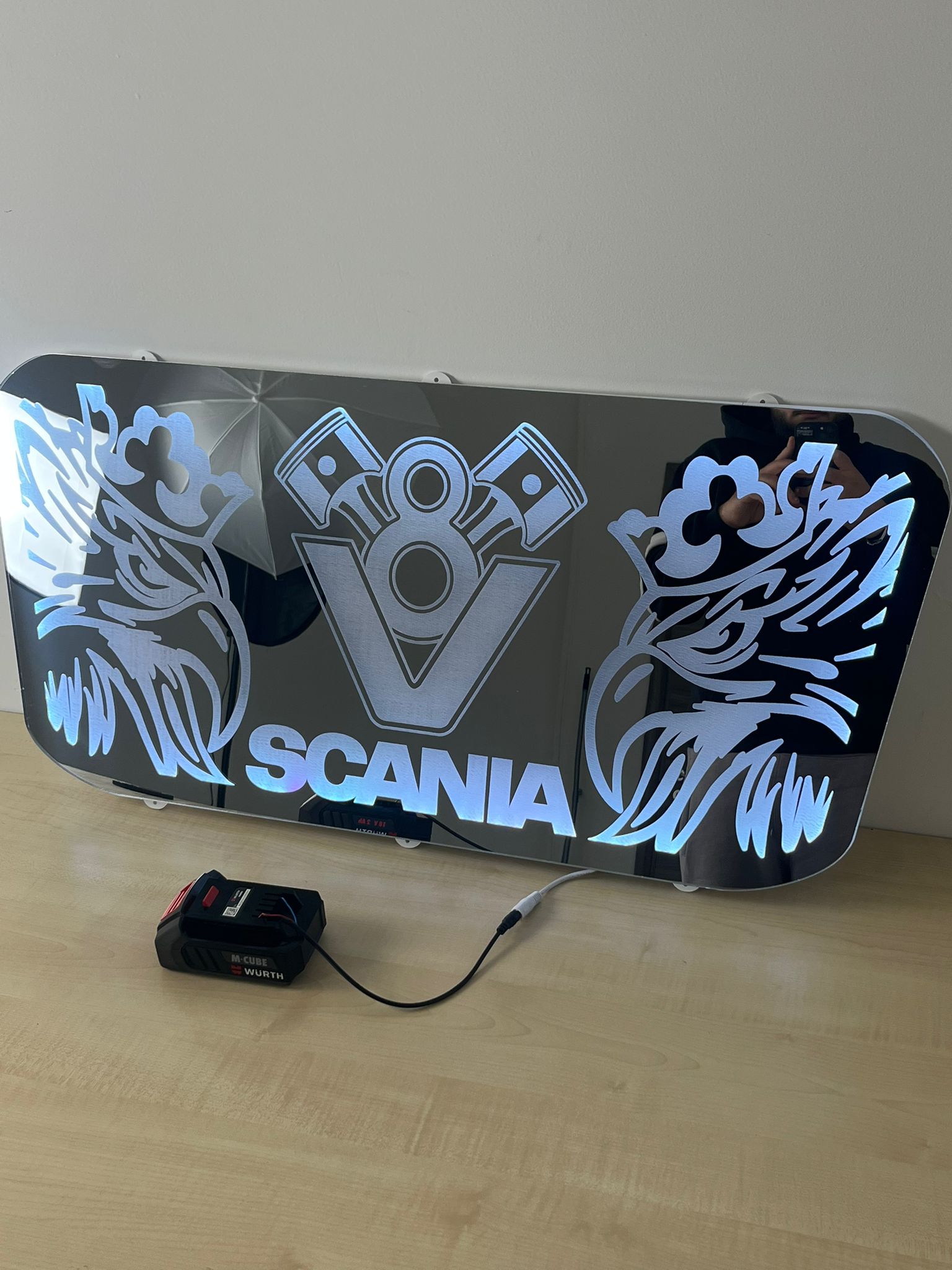 Dai un tocco esclusivo alla cabina del tuo Scania con questa retrobranda incisa al laser con logo V8, perfetta per esaltare l’interno con stile e personalità.