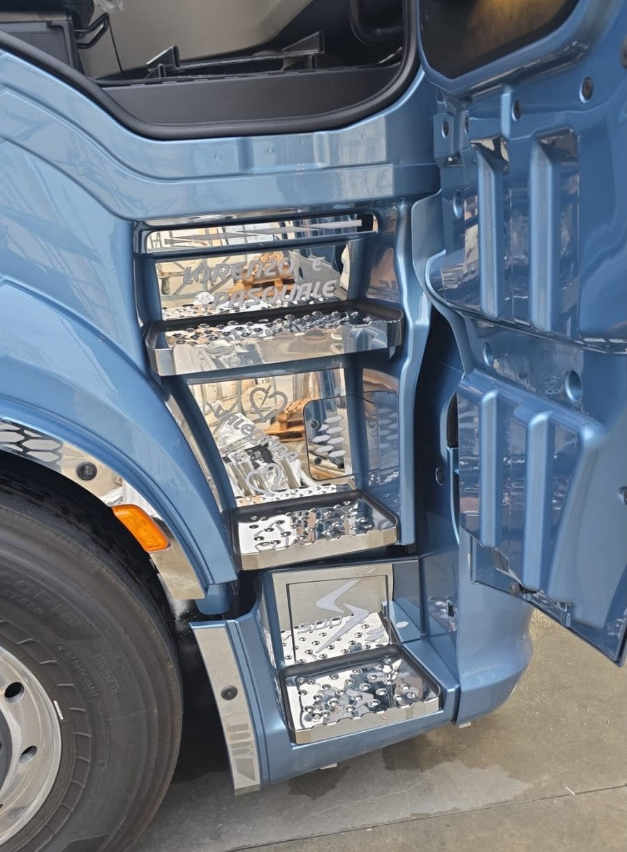 Valorizza e illumina l’interno del tuo Iveco S-Way con questo rivestimento per pedana di salita, personalizzabile e dotato di illuminazione per un effetto unico e distintivo.