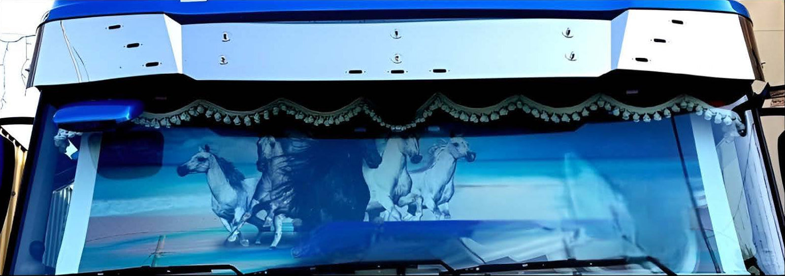 Proteggi e valorizza la cabina del tuo camion con questa visiera parasole in acciaio inox da 2 mm, progettata con tagli per l’installazione di luci LED.
